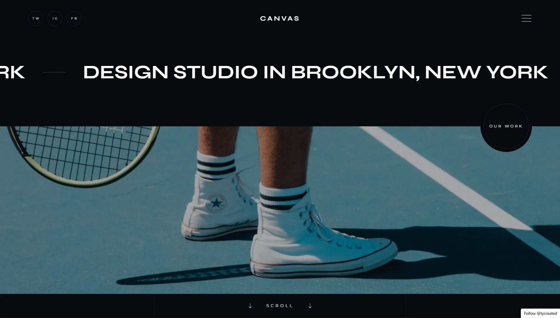 This one’s by one of my favorite creators, Tyler Hughey, and it’s available free as a Webflow cloneable. Canvas runs on a dark theme and is packed with unique scrolling animations that make the whole experience feel dynamic and alive. With its playful typography, it definitely leans more toward the creative, fun, edgy side than the buttoned-up corporate agency look.
