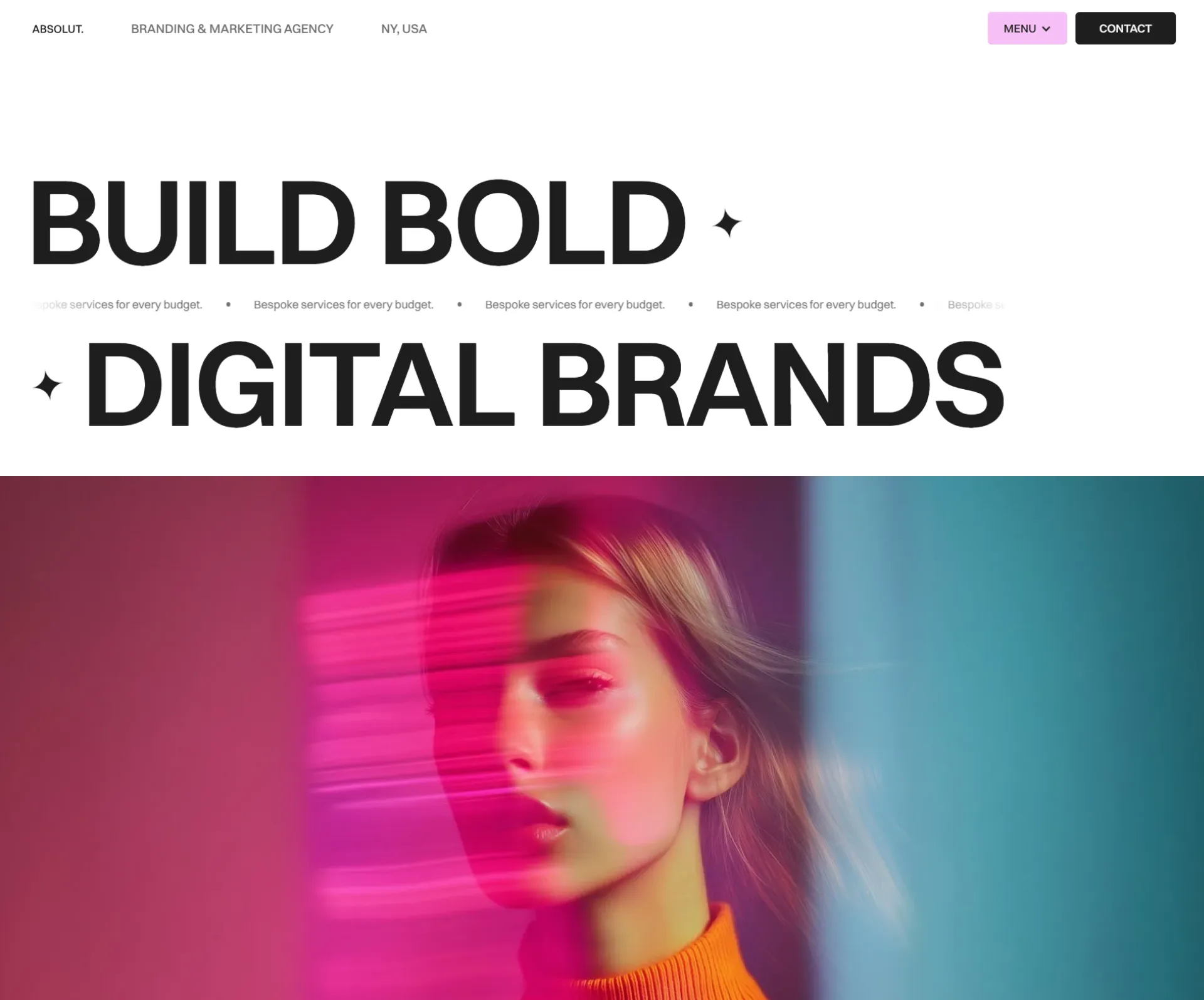 Designed by yours truly, Absolute is the kind of template that makes a statement with bold, oversized typography that instantly feels modern and stylish. It has a neutral color scheme which means whatever photos you add will pop, and the minimalist layouts keep the focus right where it should be: on your work. Add in smooth hover and scrolling animations and you’ve got a site that feels both clean and engaging. With 12 pages (including blog, projects, and team members CMS), it’s a solid choice for creative branding and marketing agencies that want a polished online presence.